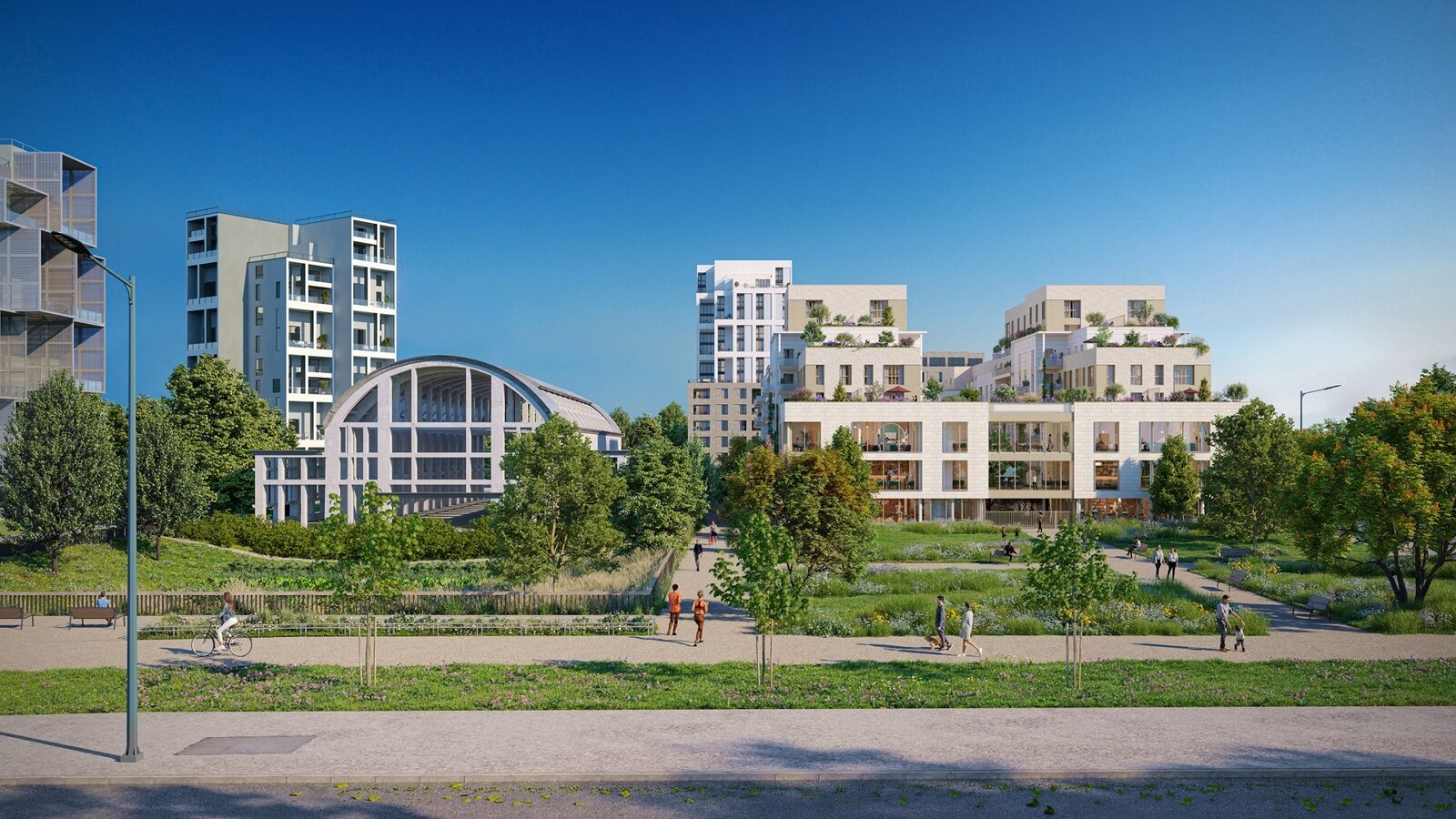 Résidence neuve à l’architecture contemporaine, avec espaces verts, jardin collectif et placette arborée.